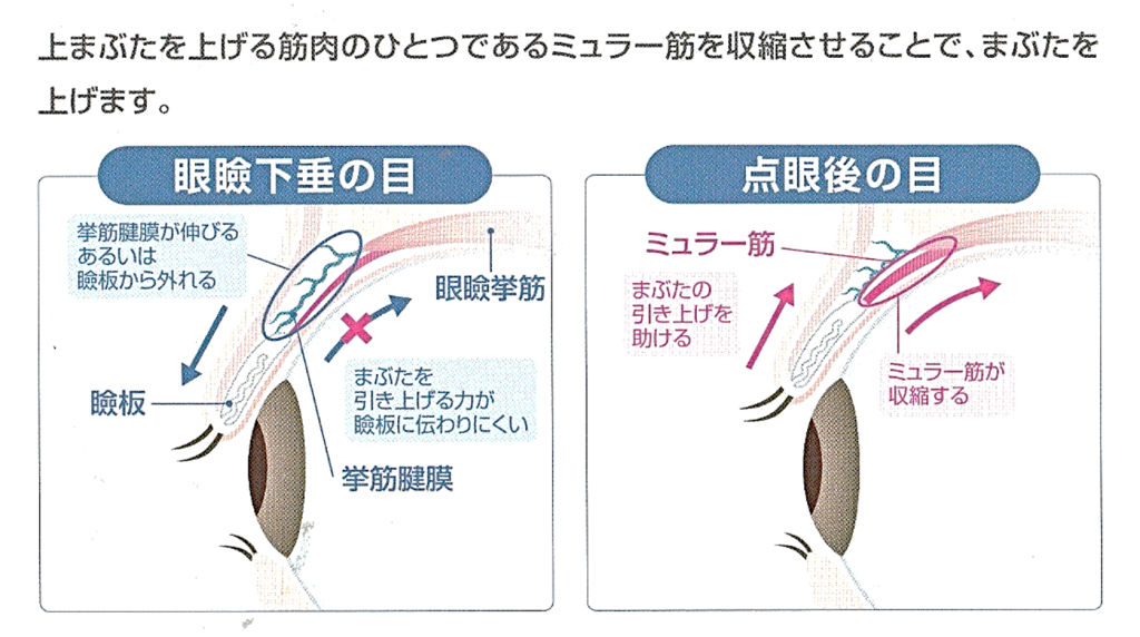 上まぶたを持ち上げる筋肉のひとつであるミュラー筋を収縮させます。